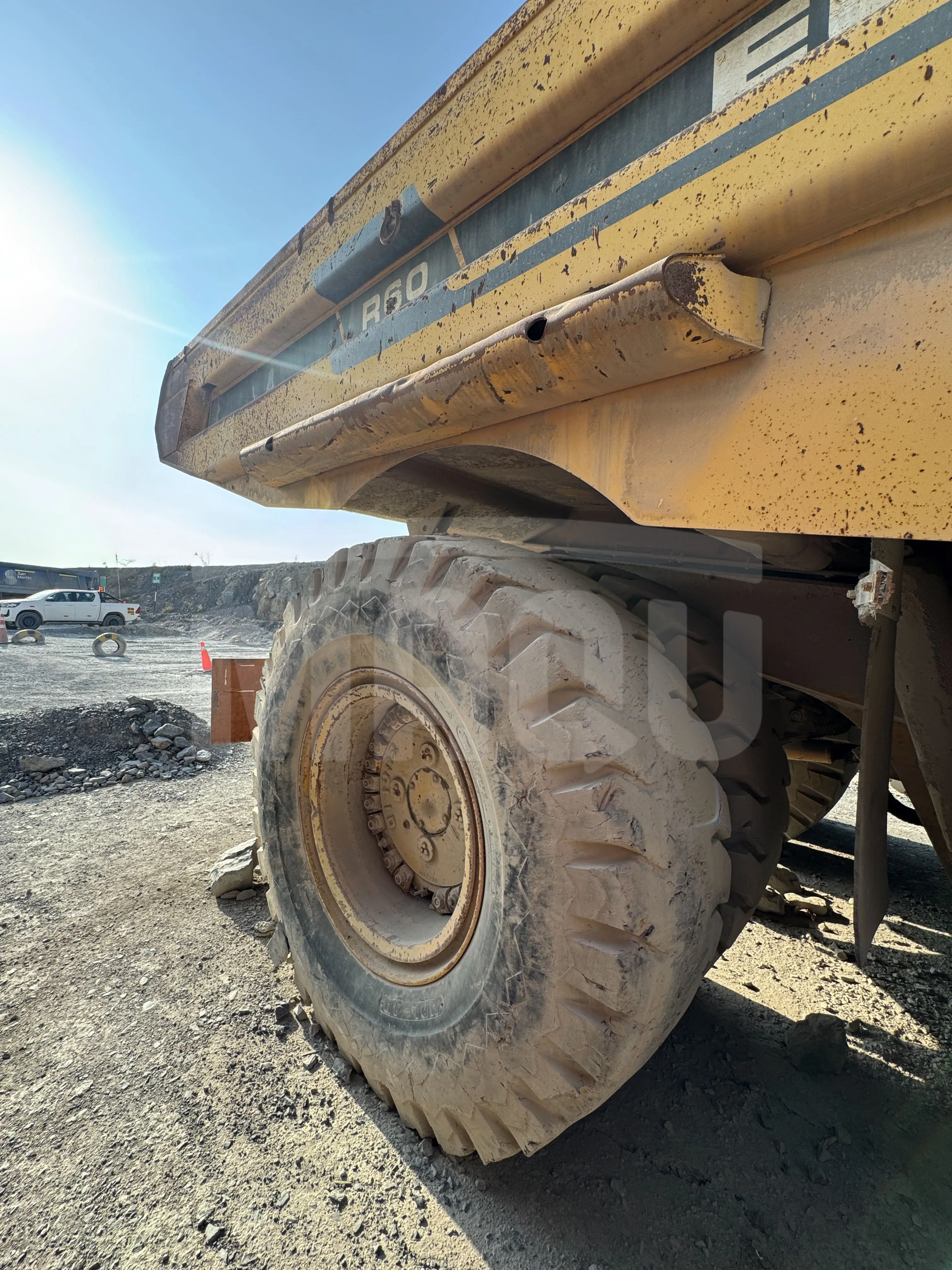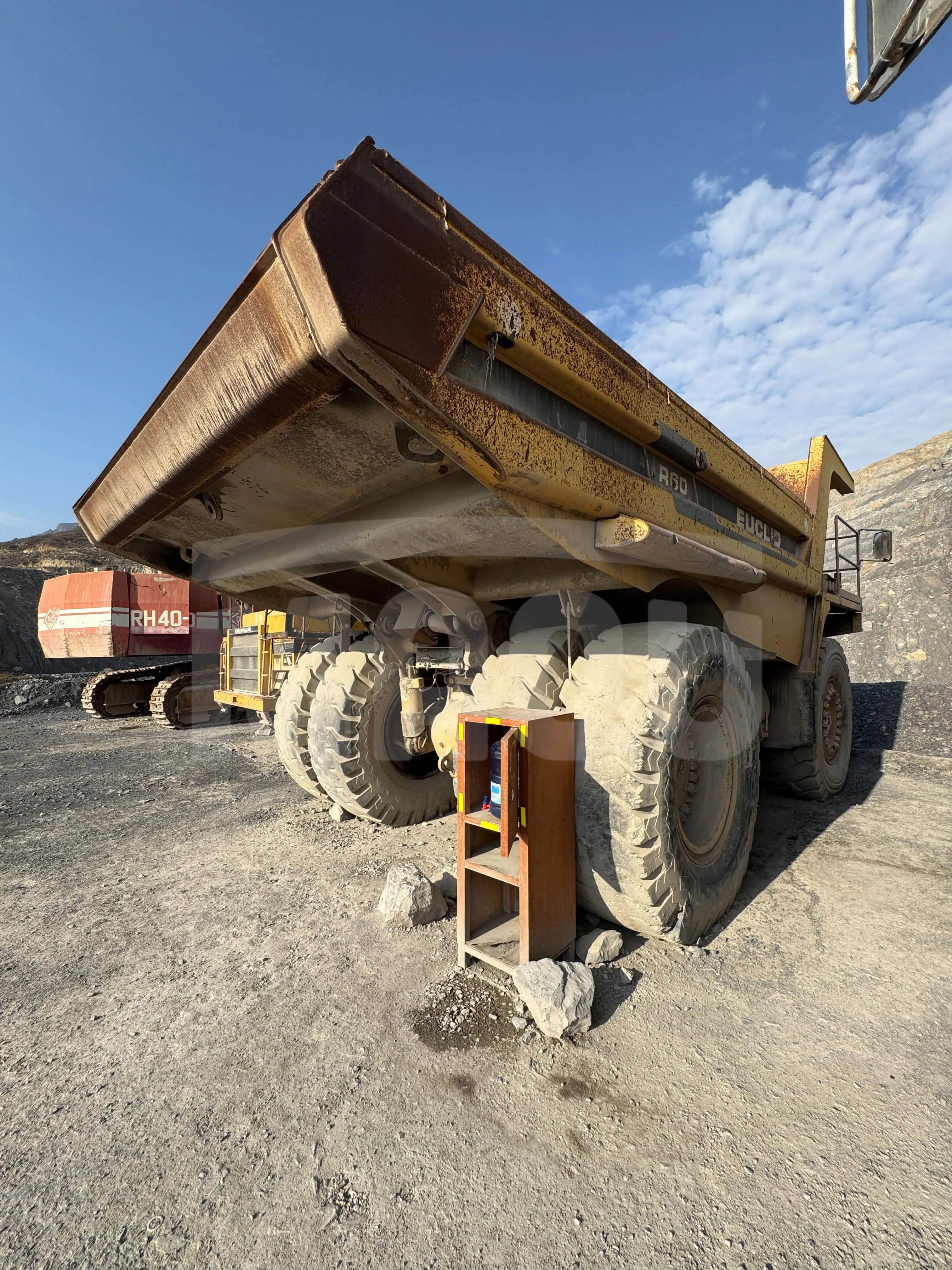 Camión de acarreoEUCLID R-60 diseñado para cargas extremas. Ideal para el transporte de materiales minerales, escombros y sobrecarga en proyectos de minería a cielo abierto y grandes movimientos de tierra. Ofrece una excepcional capacidad de carga, durabilidad en terrenos agresivos y un diseño centrado en la productividad y la facilidad de operación.